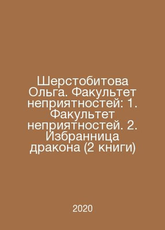 Olga Sherstobitova. Faculty of Trouble: 1. Faculty of Trouble. 2. The Chosen Dragon (2 books) In Russian /Sherstobitova Olga. Fakultet nepriyatnostey: 1. Fakultet nepriyatnostey. 2. Izbrannitsa drakona (2 knigi) Set. Series: M. Exmo Academy of Magic 2020-2021.Contact us for details or to request photos of available books. Delivery of this book could take longer than normal due to additional handling time before shipping, and no rush delivery options are available. Please let us know if you have a specific date by which you need to receive your order.SKUalbcfef5cb447394ae3