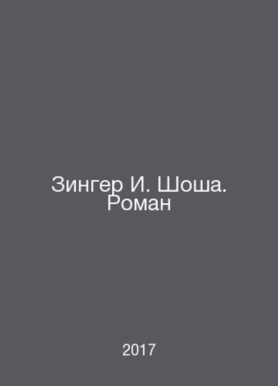 Singer I. Shosha. Roman In Russian /Zinger I. Shosha. Roman M.: Books 2017. Contact us for details or to request photos of available books. Delivery of this book could take longer than normal due to additional handling time before shipping, and no rush delivery options are available. Please let us know if you have a specific date by which you need to receive your order.SKUalbd050efe3a9c4d22a