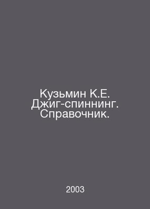 Kuzmin K.E. Jig-spinning. Reference book. In Russian /Kuzmin K.E. Dzhig-spinning. Spravochnik. M. ID Ruchenkinykh. 2003.Contact us for details or to request photos of available books. Delivery of this book could take longer than normal due to additional handling time before shipping, and no rush delivery options are available. Please let us know if you have a specific date by which you need to receive your order.SKUalbd0b584b2a4fa63a7