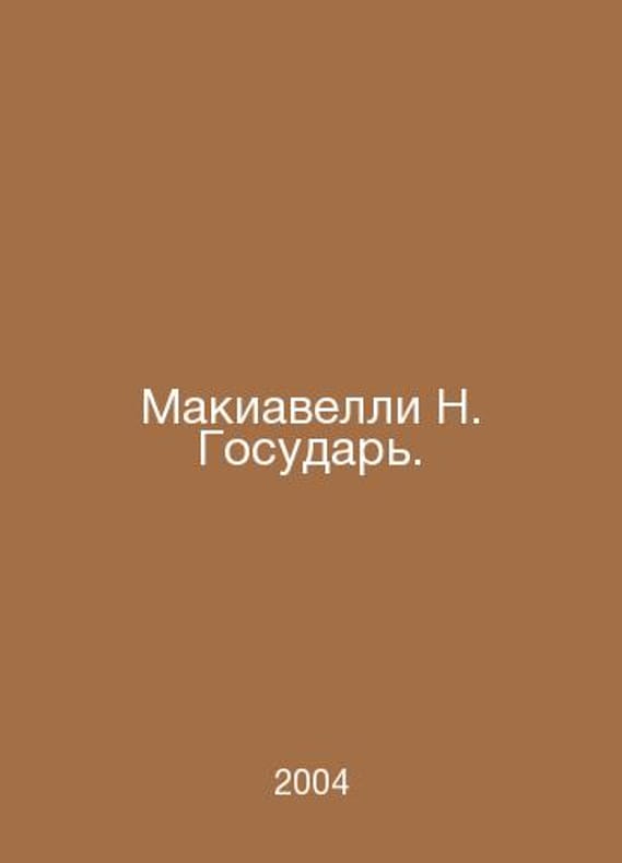 Machiavelli N. Sovereign. In Russian /Makiavelli N. Gosudar. Anthology of Thought series M-Kharkov Exmo-Folio 2004.Contact us for details or to request photos of available books. Delivery of this book could take longer than normal due to additional handling time before shipping, and no rush delivery options are available. Please let us know if you have a specific date by which you need to receive your order.SKUalbd17e13b429b16120