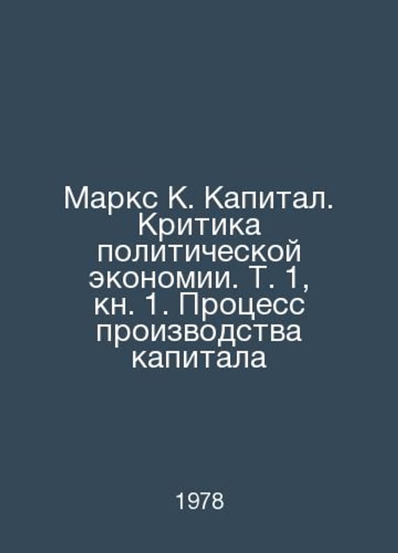 Marx K. Capital. Criticism of Political Economy. Vol. 1, Book 1. The Process of Capital Production In Russian /Marks K. Kapital. Kritika politicheskoy ekonomii. T. 1, kn. 1. Protsess proizvodstva kapitala M Politizdat 1978.Contact us for details or to request photos of available books. Delivery of this book could take longer than normal due to additional handling time before shipping, and no rush delivery options are available. Please let us know if you have a specific date by which you need to receive your order.SKUalbd20c26b50b8bbee2