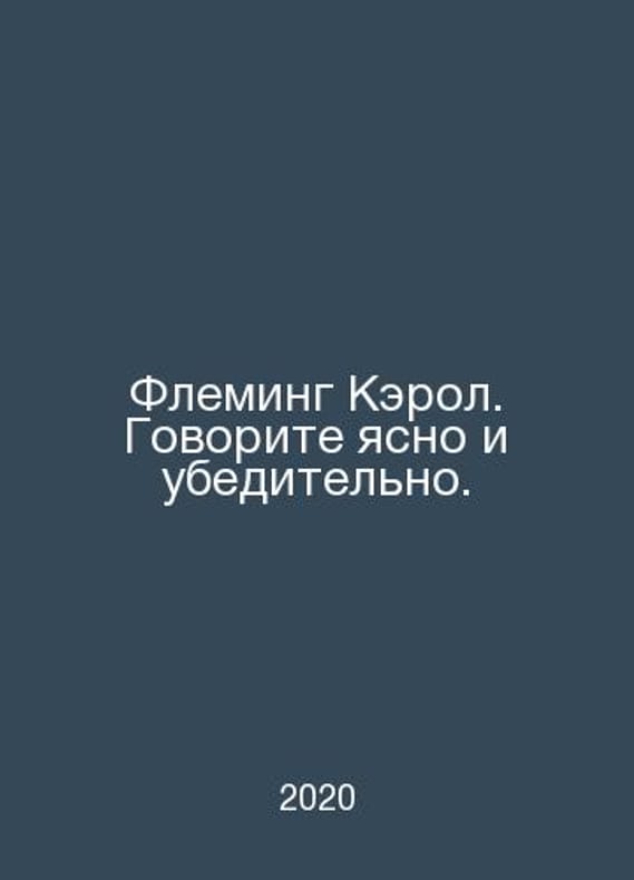 Fleming Carol. Speak clearly and persuasively. In Russian /Fleming Kerol. Govorite yasno i ubeditelno. Sat.: Peter 2020. Contact us for details or to request photos of available books. Delivery of this book could take longer than normal due to additional handling time before shipping, and no rush delivery options are available. Please let us know if you have a specific date by which you need to receive your order. SKUalbd228a8db434497b9