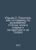 Yuryev O. The writer as a fellow survivor: Articles, essays and essays about literature and more In Russian /Yurev O. Pisatel kak sotovarishch po vyzhivaniyu: Stati, esse i ocherki o literature i ne tolko St. Petersburg, Ivan Limbach Publishing House. 2014 year. Contact us for details or to request photos of available books. Delivery of this book could take longer than normal due to additional handling time before shipping, and no rush delivery options are available. Please let us know if you have a specific date by which you need to receive your order. SKUalbd23271ef19291441