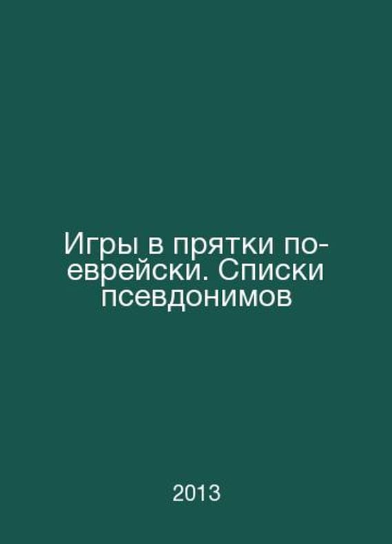 Hide-and-seek games in Hebrew. Lists of aliases In Russian /Igry v pryatki po-evreyski. Spiski psevdonimov 6th edition, supplement, isp. M. Without publishing house, 2013. Contact us for details or to request photos of available books. Delivery of this book could take longer than normal due to additional handling time before shipping, and no rush delivery options are available. Please let us know if you have a specific date by which you need to receive your order.SKUalbd256c2cfb37bfa27