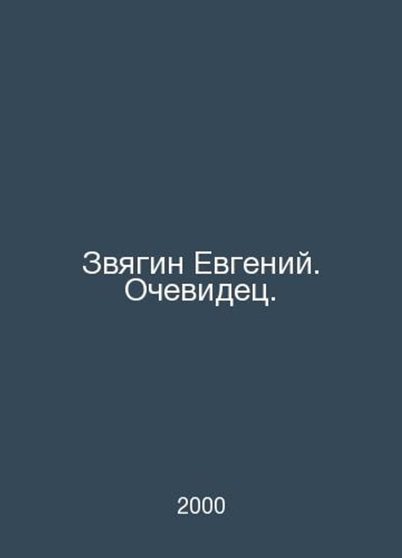 Evgeny Zvyagin. Witness. In Russian /Zvyagin Evgeniy. Ochevidets. Series Version of the letter. St. Borei Art 2000.Contact us for details or to request photos of available books. Delivery of this book could take longer than normal due to additional handling time before shipping, and no rush delivery options are available. Please let us know if you have a specific date by which you need to receive your order.SKUalbd2d2e775dea492ca