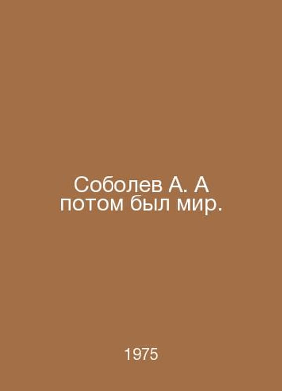 A. Sobolev And then there was peace. In Russian /Sobolev A. A potom byl mir. Stories and Stories Kaliningrad 1975.Contact us for details or to request photos of available books. Delivery of this book could take longer than normal due to additional handling time before shipping, and no rush delivery options are available. Please let us know if you have a specific date by which you need to receive your order.SKUalbd2e774613540c2dd