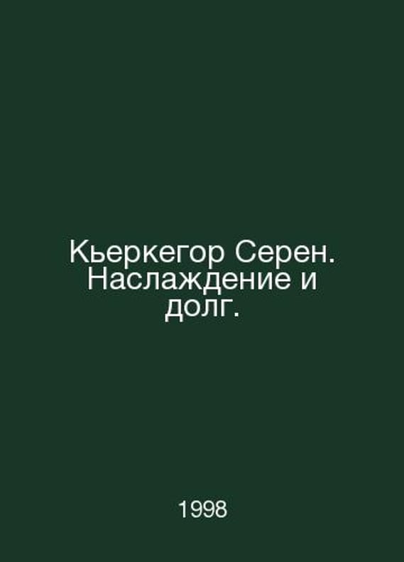 Kierkegaard Seren. Pleasure and Duty. In Russian /Kerkegor Seren. Naslazhdenie i dolg. The series: outstanding thinkers. Rostov-on-Don: Phoenix, 1998.Contact us for details or to request photos of available books. Delivery of this book could take longer than normal due to additional handling time before shipping, and no rush delivery options are available. Please let us know if you have a specific date by which you need to receive your order.SKUalbd435bfae0de59c7d