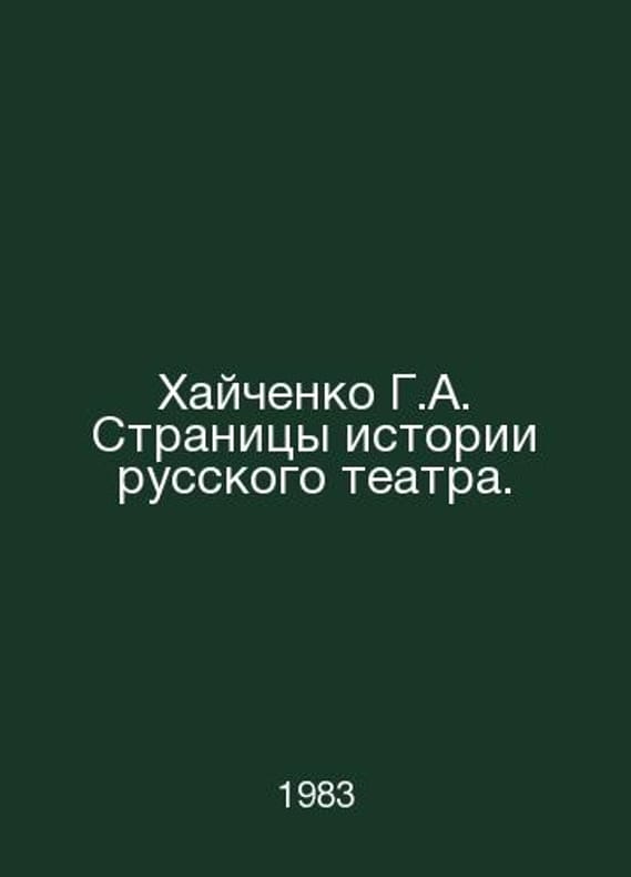 Khaychenko G.A. Pages of the history of the Russian theatre. In Russian /Khaychenko G.A. Stranitsy istorii russkogo teatra. M Art 1983.. Contact us for details or to request photos of available books. SKUalbd442b7e00b85abde.