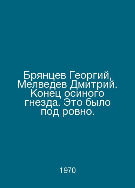 Georgy Bryantsev, Dmitry Melvedev. The end of the aspen nest In Russian /Bryantsev Georgiy, Melvedev Dmitriy. Konets osinogo gnezda. Eto bylo pod rovno. Drawings by Pinkisevich M. Childrens literature 1970. Contact us for details or to request photos of available books. Delivery of this book could take longer than normal due to additional handling time before shipping, and no rush delivery options are available. Please let us know if you have a specific date by which you need to receive your order.SKUalbd46147ca3a36df51