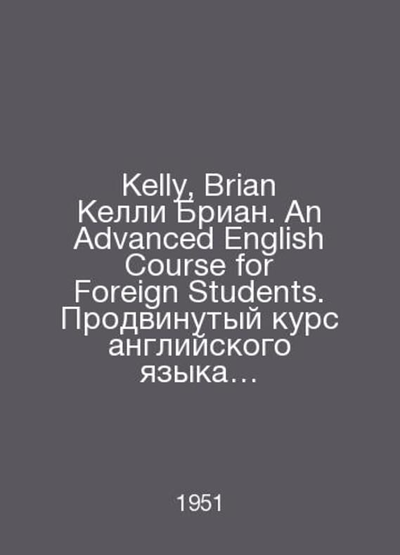 Kelly, Brian Kelly Brian. An Advanced English Course for Foreign Students. Advanced English Course for International Students. In English /Kelly, Brian Kelli Brian. An Advanced English Course for Foreign Students. Prodvinutyy kurs angliyskogo yazyka dlya inostrannykh studentov. In English. London-New York-Toronto London-New York-Toronto Longmans, Green and Co. 1951.. Contact us for details or to request photos of available books. SKUalbd4d66efa58866772.