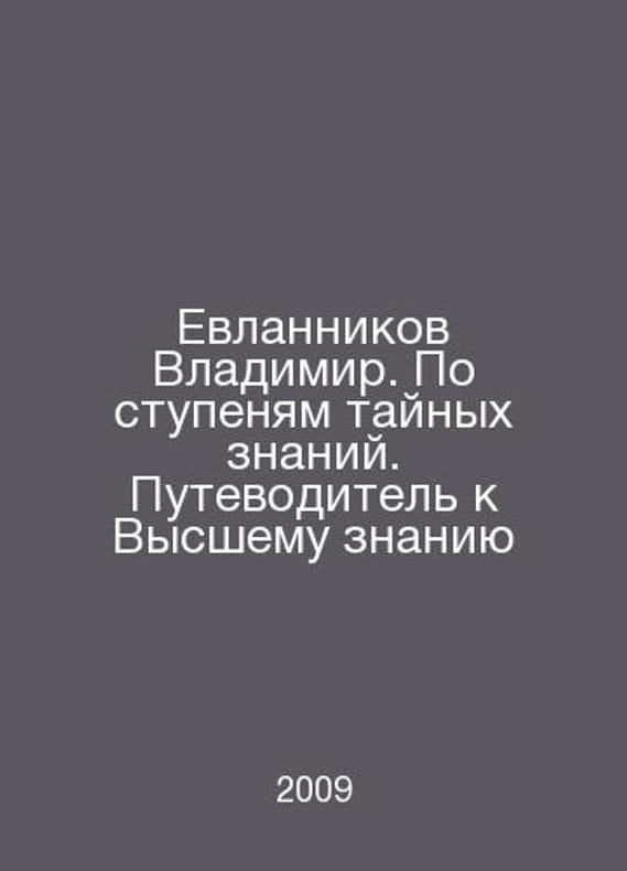 Vladimir Evlannikov. On the steps of secret knowledge. A guide to higher knowledge In Russian /Evlannikov Vladimir. Po stupenyam taynykh znaniy. Putevoditel k Vysshemu znaniyu M. Amrita-Rus 2009. Contact us for details or to request photos of available books. Delivery of this book could take longer than normal due to additional handling time before shipping, and no rush delivery options are available. Please let us know if you have a specific date by which you need to receive your order. SKUalbd5585e7fb815f12d