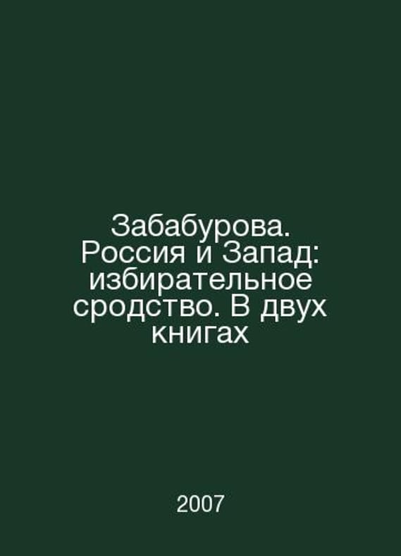 Zaburova. Russia and the West: electoral affinity. In two books In Russian /Zababurova. Rossiya i Zapad: izbiratelnoe srodstvo. V dvukh knigakh Logos 2007. Contact us for details or to request photos of available books. Delivery of this book could take longer than normal due to additional handling time before shipping, and no rush delivery options are available. Please let us know if you have a specific date by which you need to receive your order. SKUalbd5623d441181e9ce