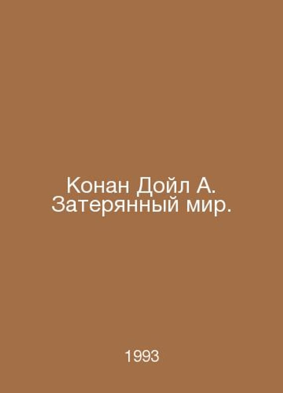 Conan Doyle A. The Lost World. In Russian /Konan Doyl A. Zateryannyy mir. The Adventure Library Continues). M. Diamond. 1993.Contact us for details or to request photos of available books. Delivery of this book could take longer than normal due to additional handling time before shipping, and no rush delivery options are available. Please let us know if you have a specific date by which you need to receive your order.SKUalbd57cc782a1d97c4b