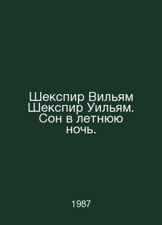 Shakespeare William Shakespeare William. A Midsummer Nights Dream. In Russian /Shekspir Vilyam Shekspir Uilyam. Son v letnyuyu noch. Series: The Book and Time. Translation from English by T. Shchepkina-Kupernik. Entry by D. Urnov. Note by A. Smirnov. Hud. Yu. M. Gukova Book 1987. Contact us for details or to request photos of available books. Delivery of this book could take longer than normal due to additional handling time before shipping, and no rush delivery options are available. Please let us know if you have a specific date by which you need to receive your order.SKUalbd5b5c74a79789d72