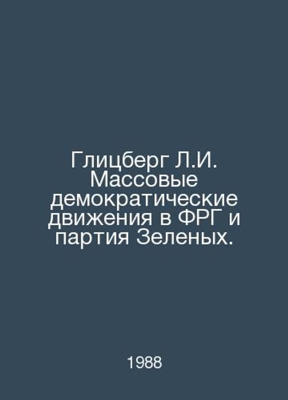 Glitzberg L.I. Mass democratic movements in Germany and the Green Party. In Russian /Glitsberg L.I. Massovye demokraticheskie dvizheniya v FRG i partiya Zelenykh. Science 1988.Contact us for details or to request photos of available books. Delivery of this book could take longer than normal due to additional handling time before shipping, and no rush delivery options are available. Please let us know if you have a specific date by which you need to receive your order.SKUalbd66dcf33bc5da0fc