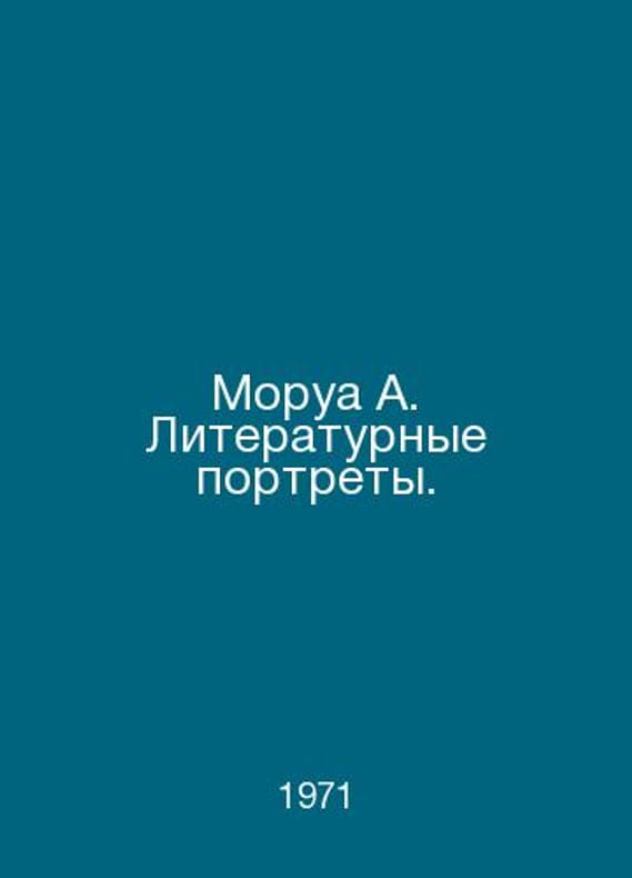 Morua A. Literary Portraits. In Russian /Morua A. Literaturnye portrety. Pen s franc M Progress 1971. Contact us for details or to request photos of available books. Delivery of this book could take longer than normal due to additional handling time before shipping, and no rush delivery options are available. Please let us know if you have a specific date by which you need to receive your order. SKUalbd699ae3b9559a27d