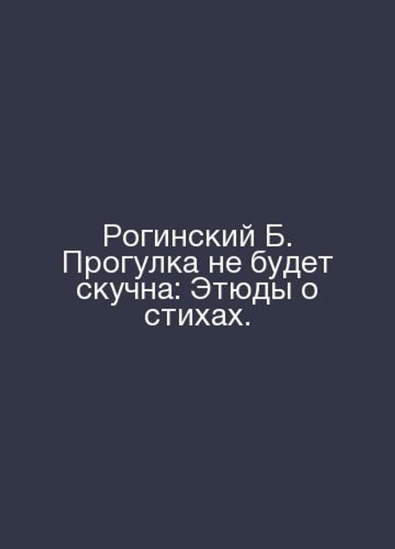 Roginsky B. The walk will not be boring: Studies about poems. In Russian /Roginskiy B. Progulka ne budet skuchna: Etyudy o stikhakh. St. Petersburg Ivan Limbach Publishing House 2024. 288 Contact us for details or to request photos of available books. Delivery of this book could take longer than normal due to additional handling time before shipping, and no rush delivery options are available. Please let us know if you have a specific date by which you need to receive your order. SKUalb93349b8878295e1b