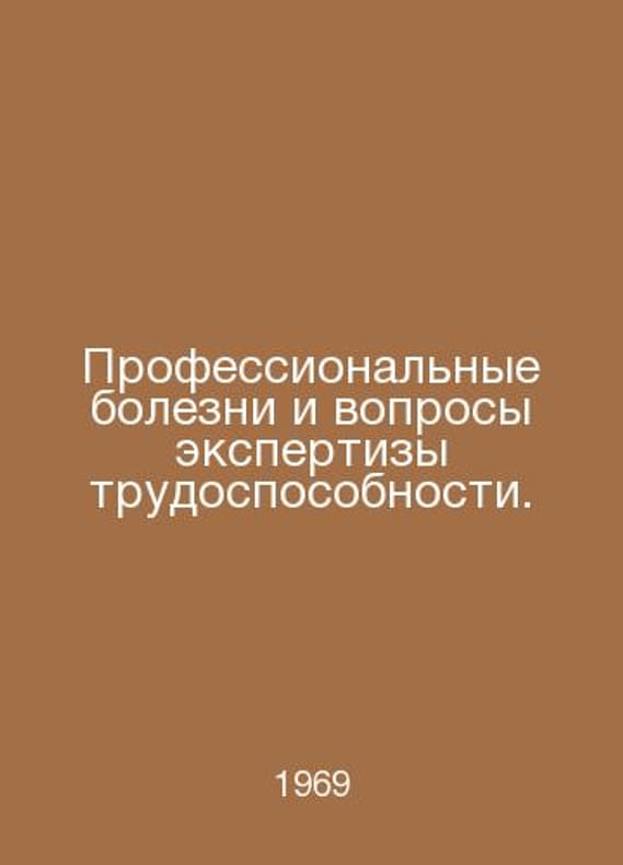 Occupational diseases and disability issues. In Russian /Professionalnye bolezni i voprosy ekspertizy trudosposobnosti. Textbook. Edited by Artamonova V.G. L. SHMI 1969.. Contact us for details or to request photos of available books. SKUalbd6e6ee984ab4db5f.