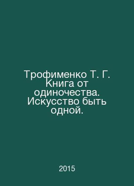 Trofimenko T. G. A book from loneliness. The Art of Being Alone. In Russian /Trofimenko T. G. Kniga ot odinochestva. Iskusstvo byt odnoy. Popular Edition. Series: Psychological Workshop. Rostov-on-Don: Phoenix, 2015.Contact us for details or to request photos of available books. Delivery of this book could take longer than normal due to additional handling time before shipping, and no rush delivery options are available. Please let us know if you have a specific date by which you need to receive your order.SKUalbd6f387a42513cee2