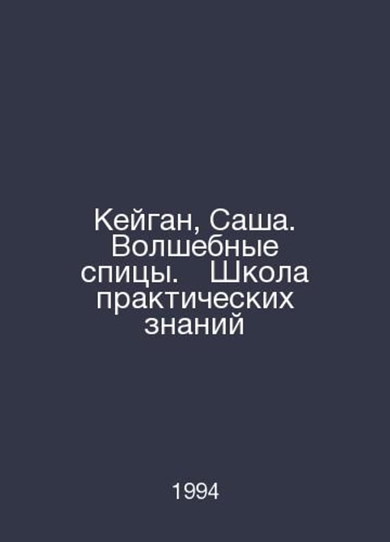 Kagan, Sacha. Magic Speaks. School of Practical Knowledge In Russian /Keygan, Sasha. Volshebnye spitsy.†Shkola prakticheskikh znaniy M Peace 1994. Contact us for details or to request photos of available books. Delivery of this book could take longer than normal due to additional handling time before shipping, and no rush delivery options are available. Please let us know if you have a specific date by which you need to receive your order.SKUalbd772e17a298a65c5
