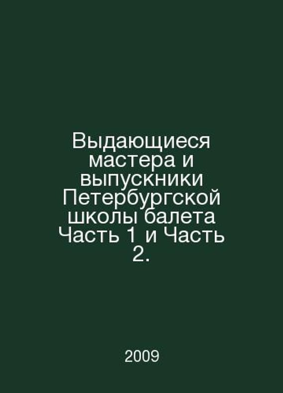 Distinguished masters and graduates of the St. Petersburg Ballet School Part 1 and Part 2. In Russian /Vydayushchiesya mastera i vypuskniki Peterburgskoy shkoly baleta Chast 1 i Chast 2. To the 270th Anniversary of the Vaganova Academy of Russian Ballet. Compilation of Articles, Part 1 of the Vaganova Academy of Russian Ballet, 2009-2010. Contact us for details or to request photos of available books. Delivery of this book could take longer than normal due to additional handling time before shipping, and no rush delivery options are available. Please let us know if you have a specific date by which you need to receive your order.SKUalbd8e0491f174e9d3e