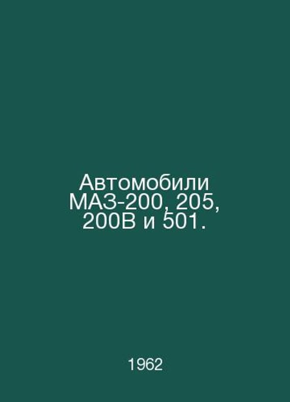 MAZ-200, 205, 200B and 501 vehicles. In Russian /Avtomobili MAZ-200, 205, 200V i 501. Short Guide to Care and Operation. Minsk. GMAZ. 1962.Contact us for details or to request photos of available books. Delivery of this book could take longer than normal due to additional handling time before shipping, and no rush delivery options are available. Please let us know if you have a specific date by which you need to receive your order.SKUalbda8fcc38b873d0f3