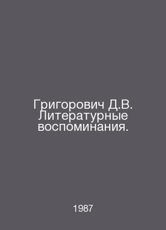 Grigorovich D.V. Literary Memoirs. In Russian /Grigorovich D.V. Literaturnye vospominaniya. M The Good Line 1987.Contact us for details or to request photos of available books. Delivery of this book could take longer than normal due to additional handling time before shipping, and no rush delivery options are available. Please let us know if you have a specific date by which you need to receive your order.SKUalbda9f2962bc4e72d2