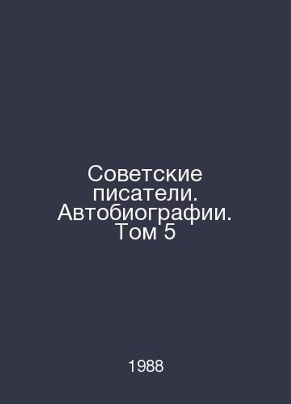 Soviet Writers. Autobiographies. Volume 5 In Russian /Sovetskie pisateli. Avtobiografii. Tom 5 M Hud lit. 1988. Contact us for details or to request photos of available books. Delivery of this book could take longer than normal due to additional handling time before shipping, and no rush delivery options are available. Please let us know if you have a specific date by which you need to receive your order. SKUalbdacfc6f610920e2a