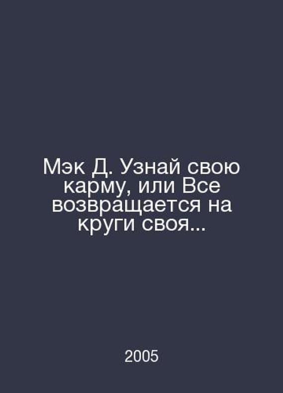 Mack D. Know your karma, or Everything returns to its circle.. In Russian /Mek D. Uznay svoyu karmu, ili Vse vozvrashchaetsya na krugi svoya.. M. Ripoll 2005. Contact us for details or to request photos of available books. Delivery of this book could take longer than normal due to additional handling time before shipping, and no rush delivery options are available. Please let us know if you have a specific date by which you need to receive your order. SKUalbdae6826bed4c60a2