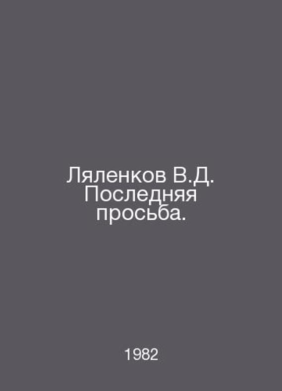 V.D. Lyalenkov Last Request. In Russian /Lyalenkov V.D. Poslednyaya prosba. L. Soviet writer. 1982.Contact us for details or to request photos of available books. Delivery of this book could take longer than normal due to additional handling time before shipping, and no rush delivery options are available. Please let us know if you have a specific date by which you need to receive your order.SKUalbdb5a8fb5442cf39f