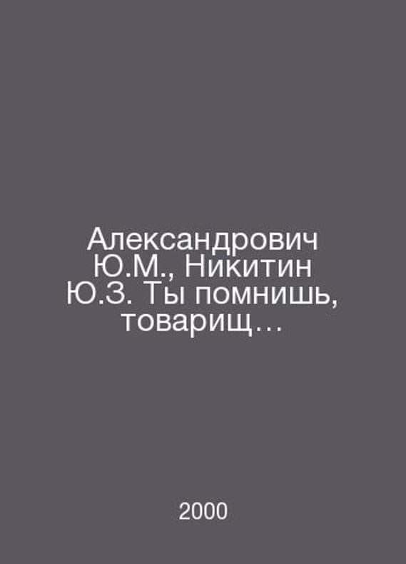 Aleksandrovich Yu.M., Nikitin Yu.Z. Do you remember, comrade? In Russian /Aleksandrovich Yu.M., Nikitin Yu.Z. Ty pomnish, tovarishch To the 80th Anniversary of the All-Russian Youth League. Chelyabinsk Book Year 2000.Contact us for details or to request photos of available books. Delivery of this book could take longer than normal due to additional handling time before shipping, and no rush delivery options are available. Please let us know if you have a specific date by which you need to receive your order.SKUalbdbcba984e2e135ea