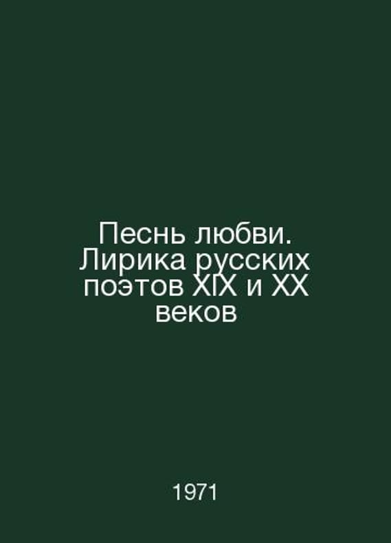 Love Song. Lyrics by Russian Poets of the 19th and 20th Centuries In Russian /Pesn lyubvi. Lirika russkikh poetov XIX i KhKh vekov M Young Guard 1971.Contact us for details or to request photos of available books. Delivery of this book could take longer than normal due to additional handling time before shipping, and no rush delivery options are available. Please let us know if you have a specific date by which you need to receive your order.SKUalbdc8ac9e9ae598ae9