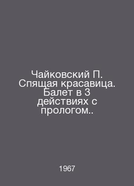Tchaikovsky The Sleeping Beauty. Ballet in 3 acts with prologue. In Russian /Chaykovskiy Spyashchaya krasavitsa. Balet v 3 deystviyakh s prologom. Libretto by I.A. Vsevolozhsky based on the fairy tale by Perrault S. Translation for Piano by Ziloti A. (edited by A.N. Dmitriev). Clavir M. Music 1967. Contact us for details or to request photos of available books. Delivery of this book could take longer than normal due to additional handling time before shipping, and no rush delivery options are available. Please let us know if you have a specific date by which you need to receive your order.SKUalbdcbb55172c99041c