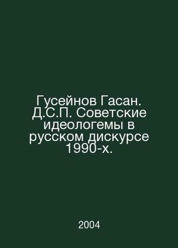 Huseynov Hasan. D.S. Soviet ideologues in the Russian discourse of the 1990s. In Russian /Guseynov Gasan. D.S. Sovetskie ideologemy v russkom diskurse 1990-kh. M. Three squares 2004.. Contact us for details or to request photos of available books. SKUalbdcf19220dbef293d.