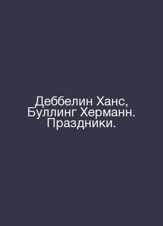 Debbeline Hans, Bulling Hermann. Holidays. In Russian /Debbelin Khans, Bulling Khermann. Prazdniki. 17 full menus for family holidays throughout the year. Nyola 21st Century 208s..Contact us for details or to request photos of available books. Delivery of this book could take longer than normal due to additional handling time before shipping, and no rush delivery options are available. Please let us know if you have a specific date by which you need to receive your order. SKUalbde7b03cf962ddda0