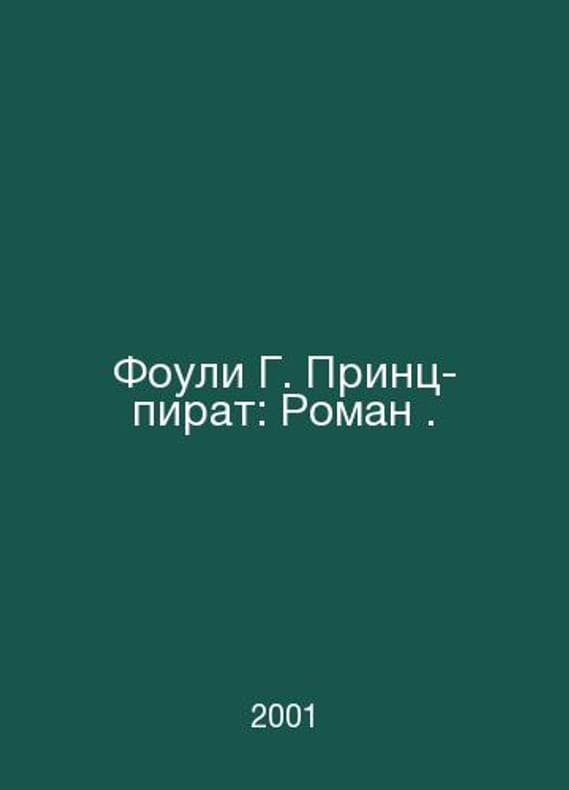 Foley G. Pirate Prince: A Novel. In Russian /Fouli G. Prints-pirat: Roman. Translated from English by E. F. Levin. - (Celebration of Love). Moscow: ACT, 2001. Contact us for details or to request photos of available books. Delivery of this book could take longer than normal due to additional handling time before shipping, and no rush delivery options are available. Please let us know if you have a specific date by which you need to receive your order. SKUalbdec76f18b7e26290