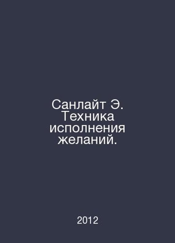 Sunlight E. Wish-fulfillment Technique. In Russian /Sanlayt E. Tekhnika ispolneniya zhelaniy. M Arrow 2012. Contact us for details or to request photos of available books. Delivery of this book could take longer than normal due to additional handling time before shipping, and no rush delivery options are available. Please let us know if you have a specific date by which you need to receive your order. SKUalbe033d0c357cad342