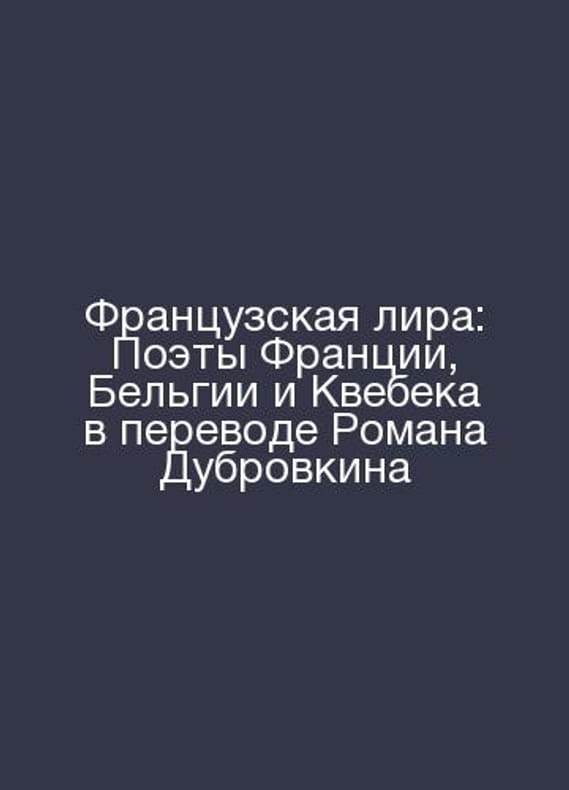 The French lira: Poets of France, Belgium, and Quebec, translated by Roman Dubrovkin In Russian /Frantsuzskaya lira: Poety Frantsii, Belgii i Kvebeka v perevode Romana Dubrovkina Per.-R. Dubrovkin Moscow Aquarius 2021 264s.Contact us for details or to request photos of available books. Delivery of this book could take longer than normal due to additional handling time before shipping, and no rush delivery options are available. Please let us know if you have a specific date by which you need to receive your order.SKUalbe04c0ec41a541672