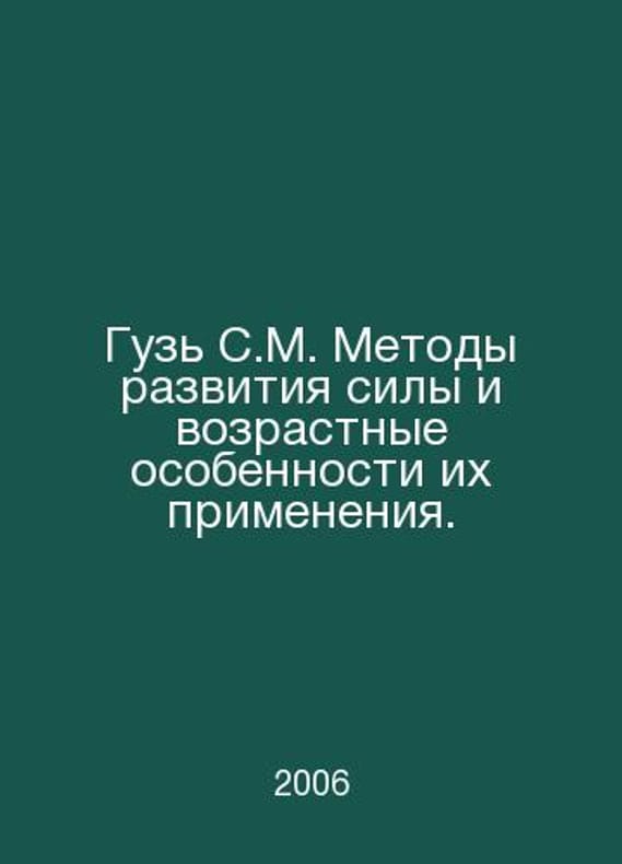 Goose S.M. Methods of force development and age-specific features of their application. In Russian /Guz S.M. Metody razvitiya sily i vozrastnye osobennosti ikh primeneniya. Petrozavodsk Publishing House 2006.Contact us for details or to request photos of available books. Delivery of this book could take longer than normal due to additional handling time before shipping, and no rush delivery options are available. Please let us know if you have a specific date by which you need to receive your order.SKUalbe102293a08f0643d