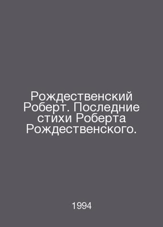 Christmas Robert. Robert Christmass Last Poems. In Russian /Rozhdestvenskiy Robert. Poslednie stikhi Roberta Rozhdestvenskogo. M.R.R. 1994.Contact us for details or to request photos of available books. Delivery of this book could take longer than normal due to additional handling time before shipping, and no rush delivery options are available. Please let us know if you have a specific date by which you need to receive your order.SKUalbe10a12a9150dbef7