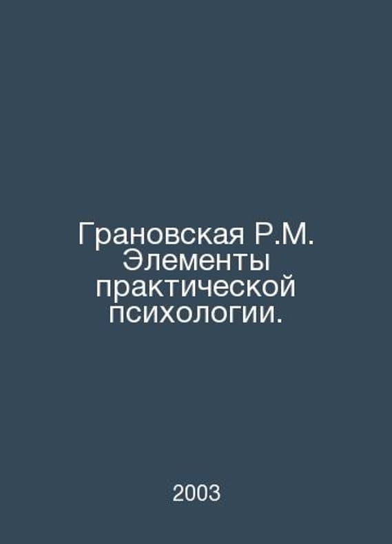 Granovskaya R.M. Elements of Practical Psychology. In Russian /Granovskaya R.M. Elementy prakticheskoy psikhologii. Edition 5, amended and supplemented. St. Petersburg: Speech, 2003.Contact us for details or to request photos of available books. Delivery of this book could take longer than normal due to additional handling time before shipping, and no rush delivery options are available. Please let us know if you have a specific date by which you need to receive your order.SKUalbe1206a095593deae