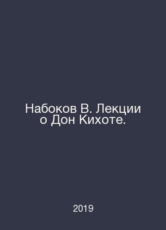 Nabokov V. Lectures on Don Quixote. In Russian /Nabokov V. Lektsii o Don Kikhote. Series: The new cultural code of the SPB ABC 2019. Contact us for details or to request photos of available books. Delivery of this book could take longer than normal due to additional handling time before shipping, and no rush delivery options are available. Please let us know if you have a specific date by which you need to receive your order. SKUalbe23c4736ac0dce84