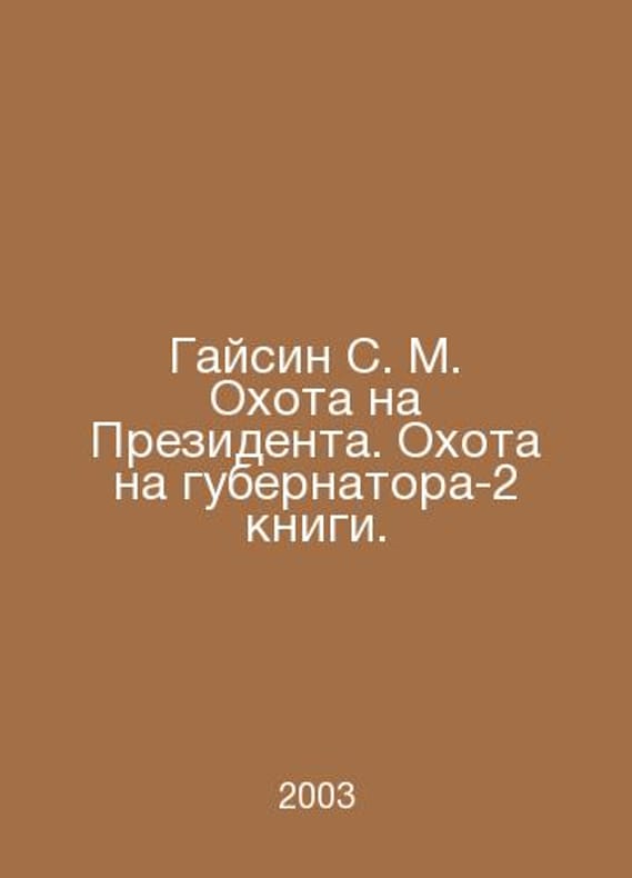 Gaisin S. M. The Hunt for the President. The Hunt for the Governor-2 Book. In Russian /Gaysin S. M. Okhota na Prezidenta. Okhota na gubernatora-2 knigi. Political Detective. Saratov 2003-2005.Contact us for details or to request photos of available books. Delivery of this book could take longer than normal due to additional handling time before shipping, and no rush delivery options are available. Please let us know if you have a specific date by which you need to receive your order.SKUalbe261663ef5aff443