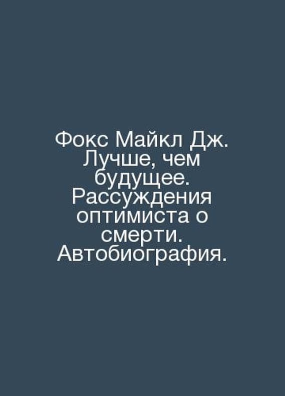 Fox Michael J. Better Than the Future: An Optimists Reason for Death. Autobiography. In Russian /Foks Maykl Dzh. Luchshe, chem budushchee. Rassuzhdeniya optimista o smerti. Avtobiografiya. Series: Legends of Cinema. Moscow: AST, 2022. 304Contact us for details or to request photos of available books. Delivery of this book could take longer than normal due to additional handling time before shipping, and no rush delivery options are available. Please let us know if you have a specific date by which you need to receive your order.SKUalbe265dab1199ce844