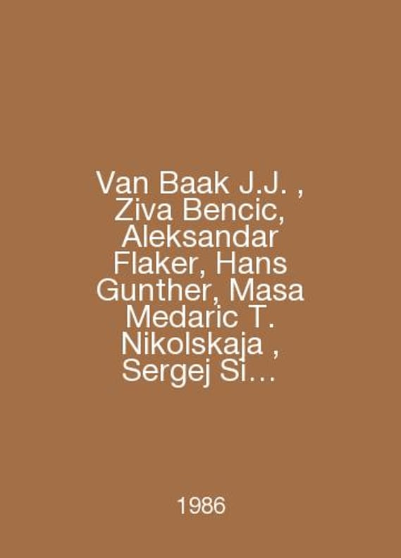 Van Baak J.J., Ziva Bencic, Aleksandar Flaker, Hans Gunther, Masa Medaric T. Nikolskaja, Sergei Si Space in avant-garde prose: The Baroque and Avant-garde, Life Building, Black Humor, Emotivists, Mayakovsky and Serbian and Croatian Literature, The Origins of Poetry in Oberiu. In Russian /Van Baak J.J. , Ziva Bencic, Aleksandar Flaker, Hans Gunther, Masa Medaric T. Nikolskaja , Sergej Si Prostranstvo v proze avangarda: Konarmiya I. Babelya, Barokko i avangard, Zhiznestroenie, Chernyy yumor, Emotsionalisty,Mayakovskiy i serbskaya i khorvatskaya literatura, Istoki poetiki OBERIU. Russian Literature. Volume 20 vol. 1: Special Issue of Russian Avant-garde Amsterdam. (Amsterdam) North-Holland. 1986.. Contact us for details or to request photos of available books. SKUalbe27ceba4ea5d7255.