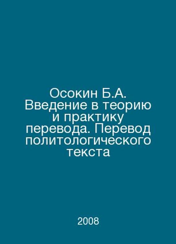 B.A. Osokin Introduction to the Theory and Practice of Translation. Translation of a Political Text In Russian /Osokin B.A. Vvedenie v teoriyu i praktiku perevoda. Perevod politologicheskogo teksta M. Russian Political Encyclopedia (ROSSPEN) 2008.. Contact us for details or to request photos of available books. SKUalbe2a091e86fe58860.