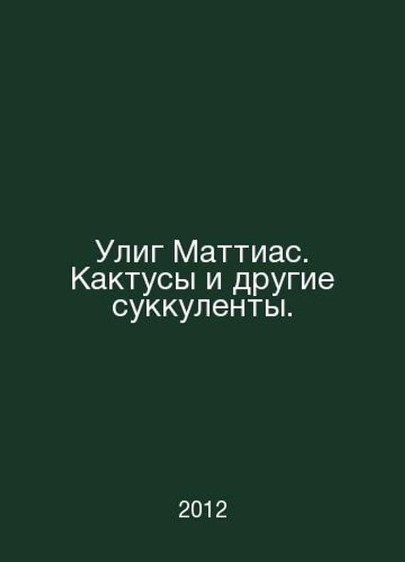 Ulig Matthias. Cactus and other succulents. In Russian /Ulig Mattias. Kaktusy i drugie sukkulenty. M. Olma-Media Group. 2012.Contact us for details or to request photos of available books. Delivery of this book could take longer than normal due to additional handling time before shipping, and no rush delivery options are available. Please let us know if you have a specific date by which you need to receive your order.SKUalbe50939e7883601c4