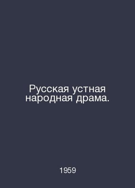 Russian oral folk drama. In Russian /Russkaya ustnaya narodnaya drama. M Academy of Sciences of the USSR 1959. Contact us for details or to request photos of available books. Delivery of this book could take longer than normal due to additional handling time before shipping, and no rush delivery options are available. Please let us know if you have a specific date by which you need to receive your order. SKUalbe56ffb2e86130116