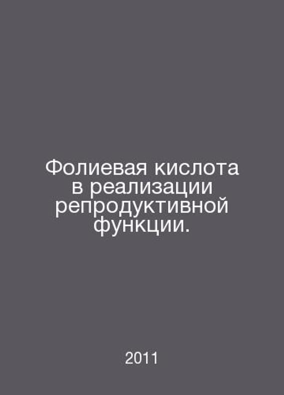 Folic acid in the realization of reproductive function. In Russian /Folievaya kislota v realizatsii reproduktivnoy funktsii. Method M 2011.Contact us for details or to request photos of available books. Delivery of this book could take longer than normal due to additional handling time before shipping, and no rush delivery options are available. Please let us know if you have a specific date by which you need to receive your order.SKUalbe570299cbaf6df91