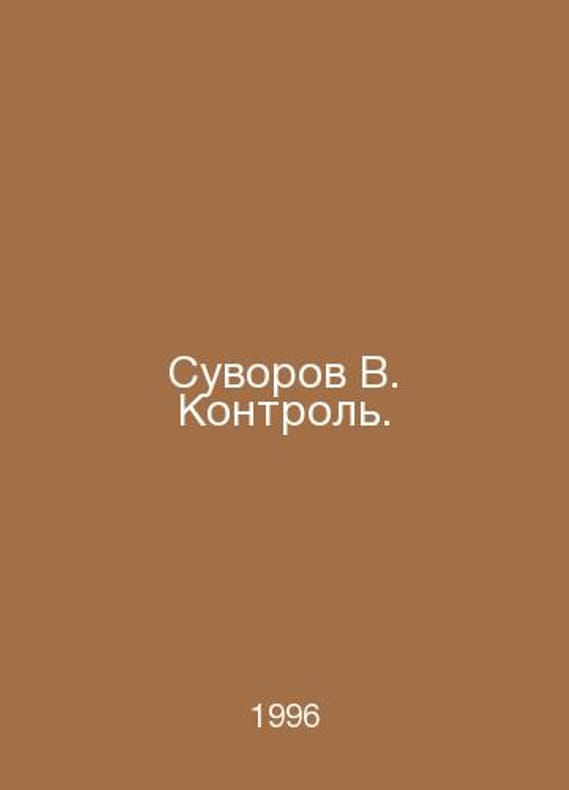 Suvorov V. Control. In Russian /Suvorov V. Kontrol. Novel M 1995.Contact us for details or to request photos of available books. Delivery of this book could take longer than normal due to additional handling time before shipping, and no rush delivery options are available. Please let us know if you have a specific date by which you need to receive your order.SKUalbd5426ba3bcbb0341